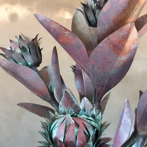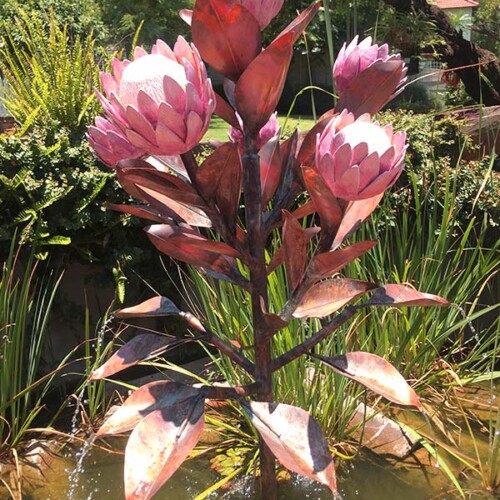 King Protea with Copper Flowers Water Sculpture