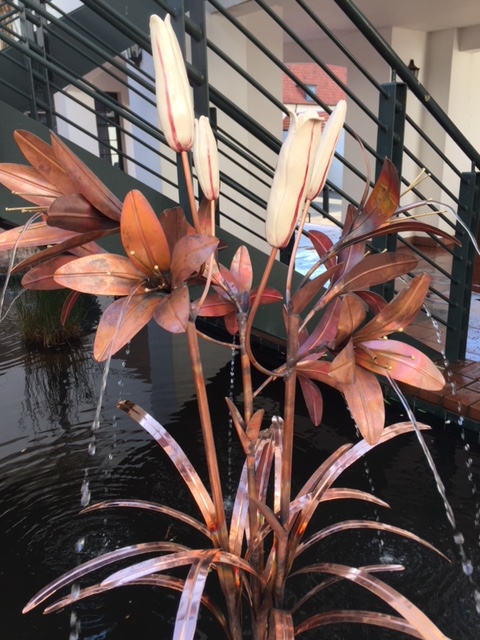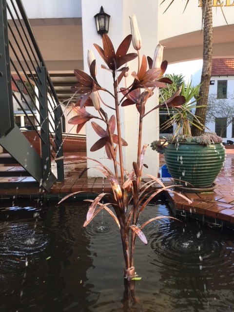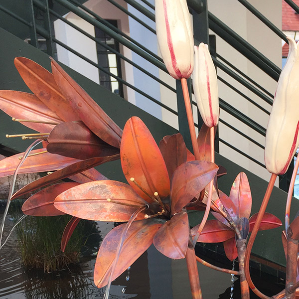 An indigenous South African lily water sculpture representing passion and refined beauty. A striking botanical statement for the garden.