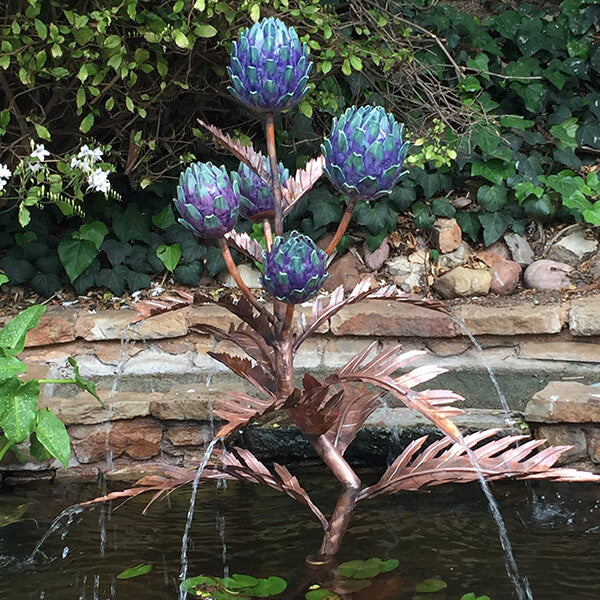 Sarah Cronin’s water sculptures combine sculptural form with the natural movement of water to create immersive garden features. Each piece is individually designed and handcrafted, allowing water to flow through carefully formed metal structures that reflect light and create a calming sensory experience. These sculptures are ideal as focal points in gardens, courtyards, and landscape designs.